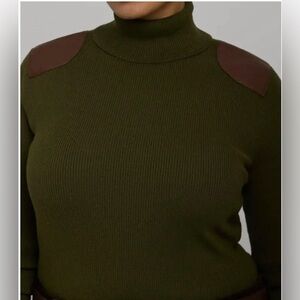 Lauren Ralph Lauren Women's Faux Leather Trim Ribbed Turtleneck-NWT-size 3X