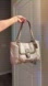 Gray with a under tone of taupe signature logo canvas with metallic brown/pewter leather trim.