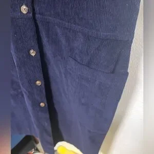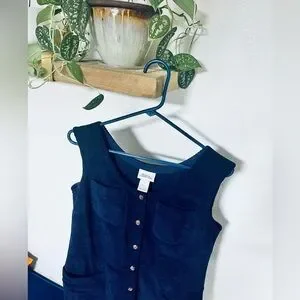 The Vermont Country Store corduroy tunic shift coverall dress, thick blue cotton