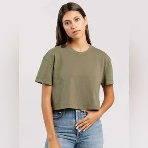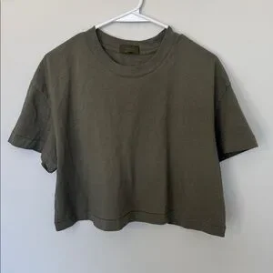 Nuuds Vintage Cotton Cropped Tee in Olive - M
