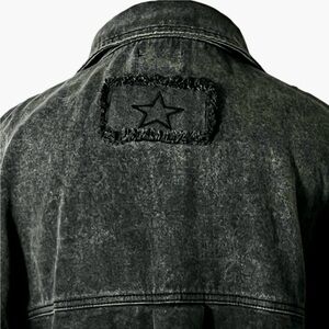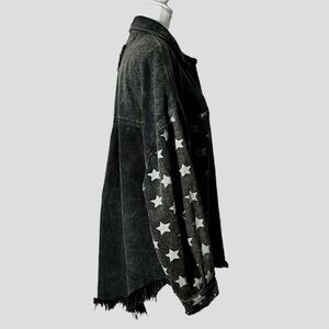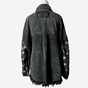 VICI Women’s Chime Star Print Denim Jacket Shacket Washed Black L Oversized