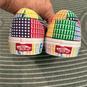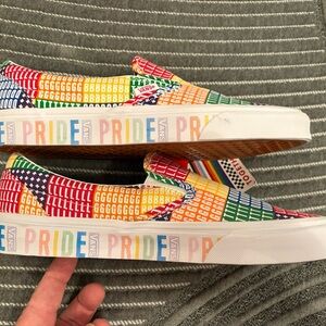 NEW Vans Pride slip-ons with a lively checkered pattern. Features red, blue, green, yellow, and white. Never worn with tags still attached. Comfortable and quality shoes.