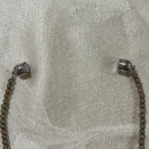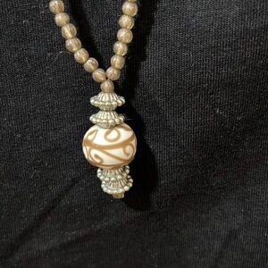 Handmade silver, tan and gold beaded necklace 14in; magnetic closure; great for a fun beachy summer look.