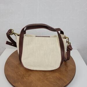 Madewell Sydney Womens Crossbody Cream Cotton Linen Edition Leather Strap NEW