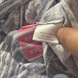 NWT Berkley Jensen Blue Striped V-Neck Long Sleeve Top Size XXL