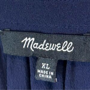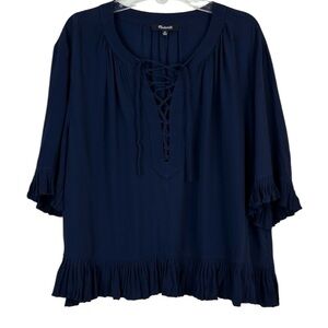 Madewell Sunpleat Navy Lace Up Short Sleeve Blouse Size XL 🔥