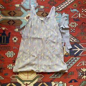 Anthropologie Partimi Women Grey Floral Silk Sleeveless Bubble Mini Dress Size 4. Flattering fit with removable silk strap belt.