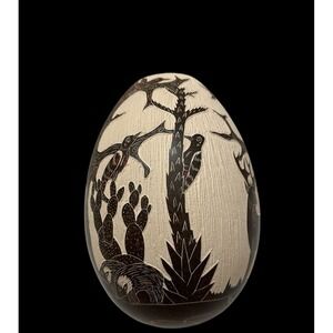 This handcrafted Mata Ortiz pottery olla by artist David Bejarano features intricate designs of a deer, ram, birds, and cactus, showcasing traditional Mexican artistry. Made from white clay, it reflects the rich cultural heritage of Mata Ortiz in Northern Mexico. This beautiful piece shows lots of the beauty in nature all on one very nicely designed pottery piece. David begins with the sgraffito on piece then creates his fabulous design which is one of David's trademarks when making pieces.