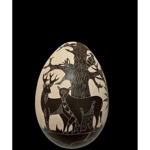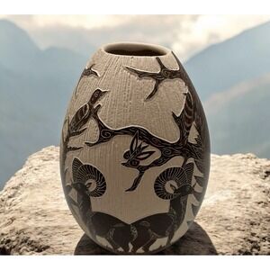 Mata Ortiz Pottery David Bejarano Olla Vase Deer Ram Birds Cactus Mexico Ceramic