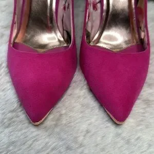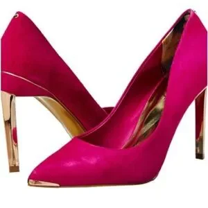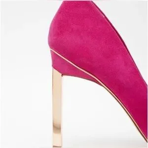Ted Baker Elvera Hot Pink Suede Stiletto Heel with Gold Hardware.