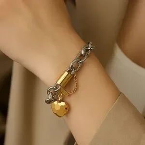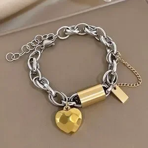 New! Zara Stainless steel mixcolor Silver and Gold heart Chain Bracelet