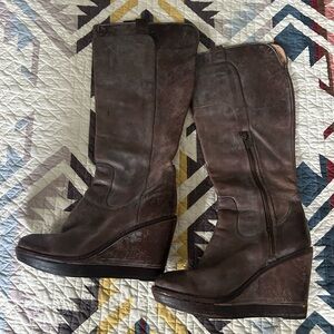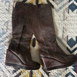FRYE Women's Paige Wedge Boot, Slate Burnished Antiqued Leather- 9