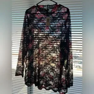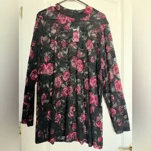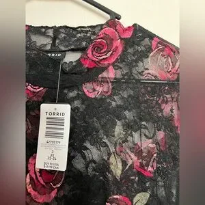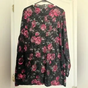 Torrid NWT long sleeve black w/roses shirt. See through shirt. 3X
