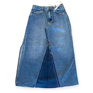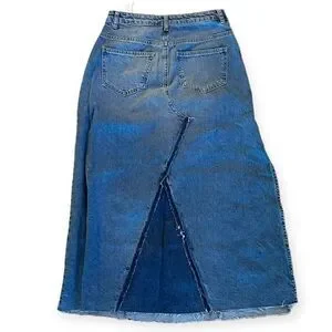 STRADIVARIUS | Blue | LONG DENIM SKIRT WITH SLIT