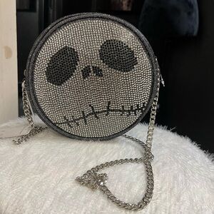 Authentic Disney x Skinny Dip London, Jack Skellington skull round SUPER SPARKLY purse. The back fabric has a pops of metallic in the fibers and glitters as well.
