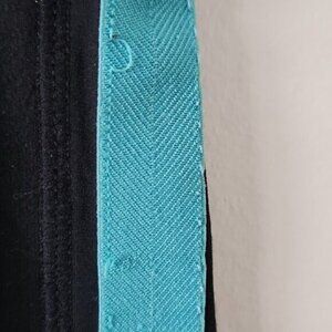 Selling LULULEMON | Capris leggings black turquoise stripes sz 4. Some interrupted stitching on the stripes.