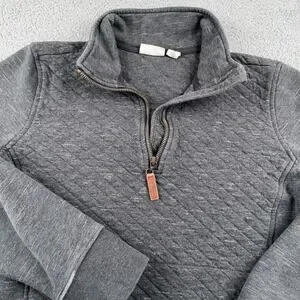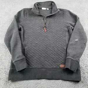 LL Bean Sweatshirt Womens Medium Gray 1/4 Zip Quilted Pullover Casual Warm
