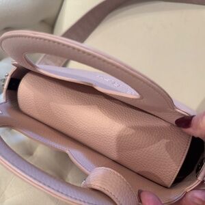Unique and cleverly designed shoulder bag from iconic Tiffany & Co. features a romantic heart-shaped silhouette in a blush pink hue. She's been created with a feminine, yet structured, design which includes a chic and detachable guitar strap. Her elegant blush color and high-quality construction make a standout accessory for any occasion. Perfect condition, nary a scuff or scratch anywhere.