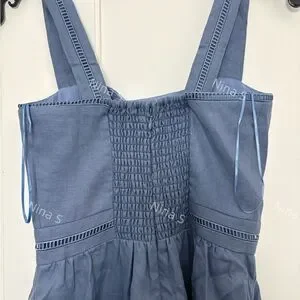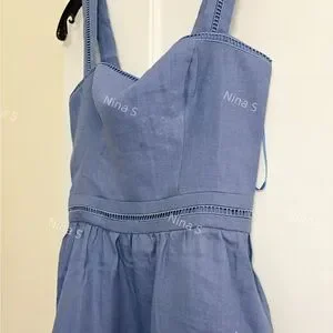 Elegant blue midi dress. Features a fitted bodice and flowing skirt. Perfect for any occasion.