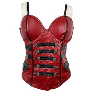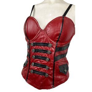 L Vintage Lip Service Vice Red Bustier Corset Military Steampunk Goth