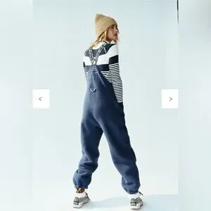 Free People Hit the Slopes Salopette Fleece Sherpa Overalls Blue Large