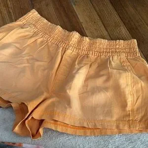Vibrant orange shorts with elastic waistband. Perfect for workouts or casual wear.