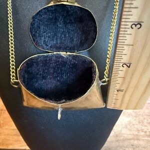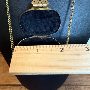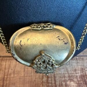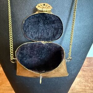 Unique vintage brass purse necklace lined with black velvet. Probably from the 1930’s . Has patina also some stretches( see photos), may polish out , I have not polished because of the great natural patina.