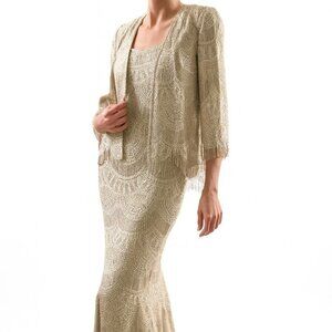 NWOT | 2 Pc Jacket & Dress SET | Champagne | Lillie Rubin | M | 90s Asymmetric