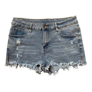 These stylish distressed denim shorts are perfect for a casual day out. Featuring a classic blue color, they offer both comfort and style.