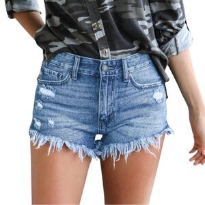 🔹High Waisted Distressed Denim Blue Shorts🔹