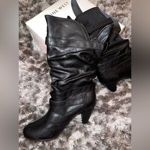 Sleek black heeled boots by Nine West. Stylish and versatile. New in box. Vintage style. Probably bought over 10 years ago.