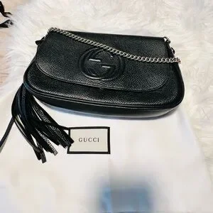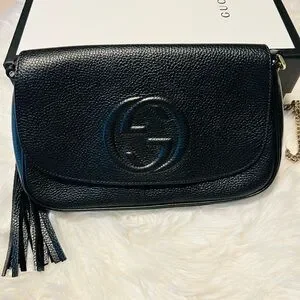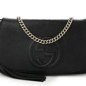 Gucci Soho Pebbled Calfskin Medium Flap Crossbody Black