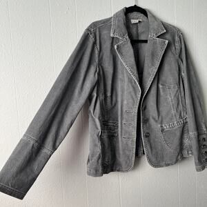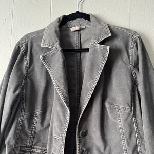 Caslon women's corduroy jacket in gray. Collared. V-neck. Button front closure. Long sleeves. Side pocket. Small zip pocket. Breathable. In good used condition. No stains, tears or holes.