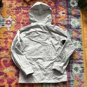 Stylish and functional. Preowned but barely worn— size medium 10-12 years old). Light gray color. Hooded design with pink interior mesh in hood. Perfect for outdoor activities.