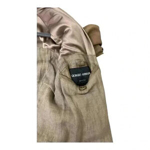 The brand is Giorgio Armani, and the outer shell material is lambskin leather. It is a regular fit jacket that is suitable for men, and is listed under the categories Clothing, Shoes & Accessories, Men, Men's Clothing, Coats, Jackets & Vests. The jacket has a vintage look but is not a vintage item.