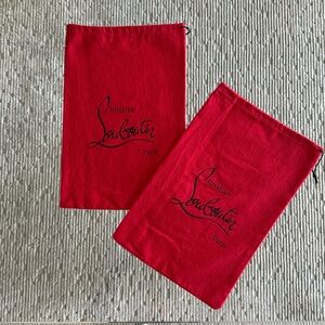 Set of two red Christian Louboutin dust bags. Measuring approximately 14”x9”. Perfect for shoe storage.