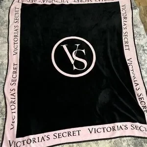 Elegant throw with Victoria's Secret logo. Soft black fabric with light pink border. In excellent condition.