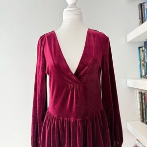 Amadi Anthropologie Amador Greta Velvet Tunic Dress Red Burgundy small