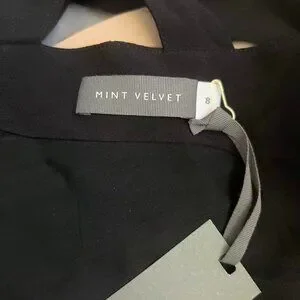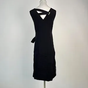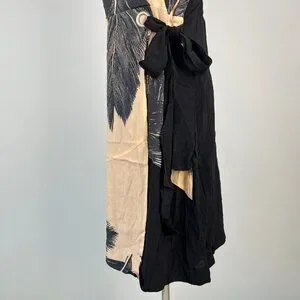 NWT Mint Velvet Beige / Peach Black Feather Pencil Midi TIE Dress US 4 UK 8