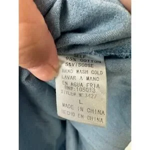 Andree By Unit Embroidered Floral Bttn Shirt Blouse L Boho Western Chambray B14