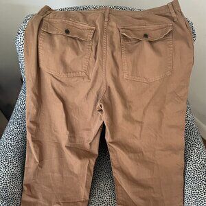 Gorgeous camel color with herringbone texture. PLEASE NOTE: there is a small tear next to the left back pocket (see photo) otherwise they're in excellent condition - no stains or holes otherwise. Smoke-free, pet-friendly home.