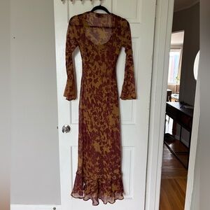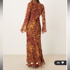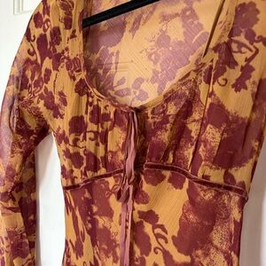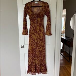 ASOS Burgundy and Mustard Floral Long Sleeve Dress