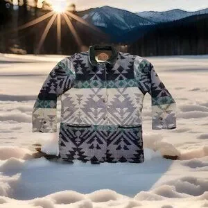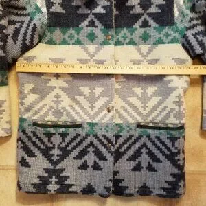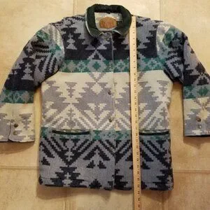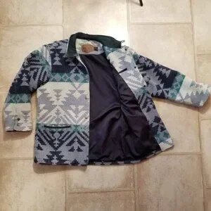✅VTG Woolrich Chore Jacket Women's LARGE Blue/Grey Aztec Southwest Wool✅STAINING