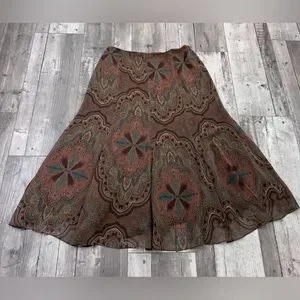 Lauren by Ralph Lauren Silk Paisley Skirt 12 Hippie Boho Chic