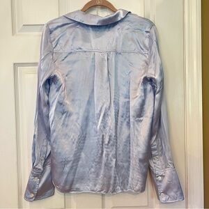 Banana Republic Blue Silk Button Up Blouse Office Career Long Sleeve Sz S FLAW