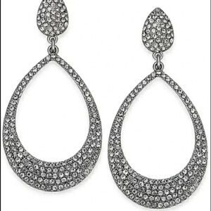 Dainty pavé crystals exude exceptional dazzle on these fashionably styled I.N.C. International Concepts drop hoop earrings.