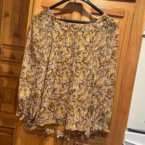 Effortlessly elevate your everyday look with this Women's LC Lauren Conrad Henley Puff Sleeve Peasant Top. Pretty fall browns and gold floral design. Long sleeves, elastic cuff, button closure, partially lined.