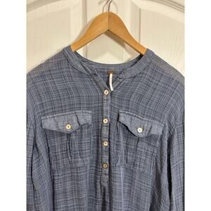 Free People Women S Talk To Me Long Sleeve Frayed Hem Popover lightweight Tunic