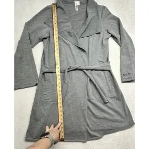 Lucky Brand Womens Large Robe Gray Wrap Style Short Tie Inside Belt