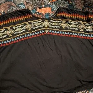 beautiful embroidery black tee from Johnny was, size medium, runs generous, comfy and flattering